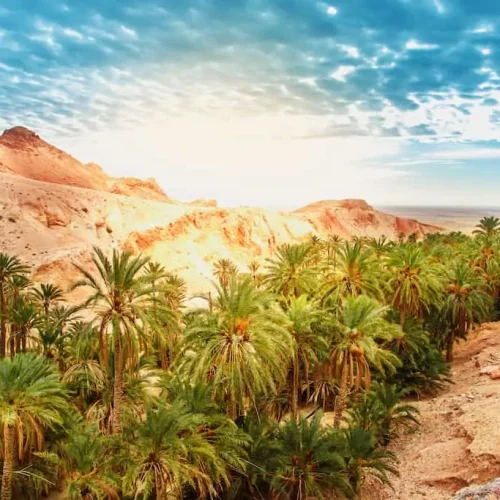 Tozeur, faimos pentru oazele sale care se întind pe aproximativ zece kilometri pătrați fiind plantat cu aproximativ 400.000 de palmieri